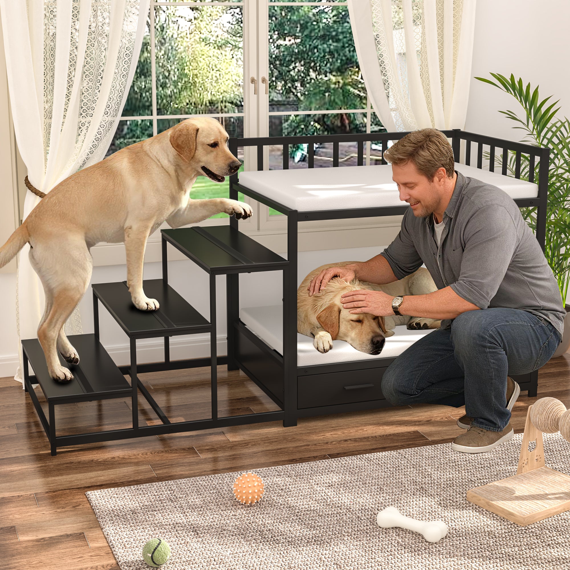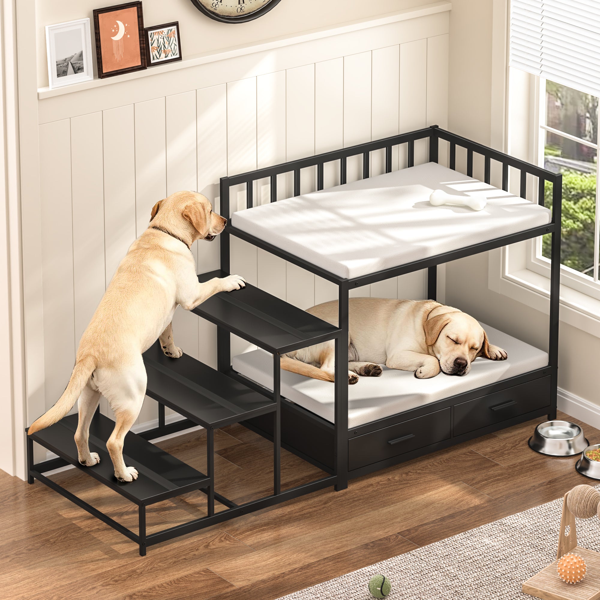 Built with a reinforced metal frame and wide, anti-slip stairs, it stays sturdy and safe even for heavy dogs or senior pets. Both mattresses are soft, supportive, and come with removable washable covers for easy cleaning. The built-in storage drawers keep toys, treats, and accessories organized.