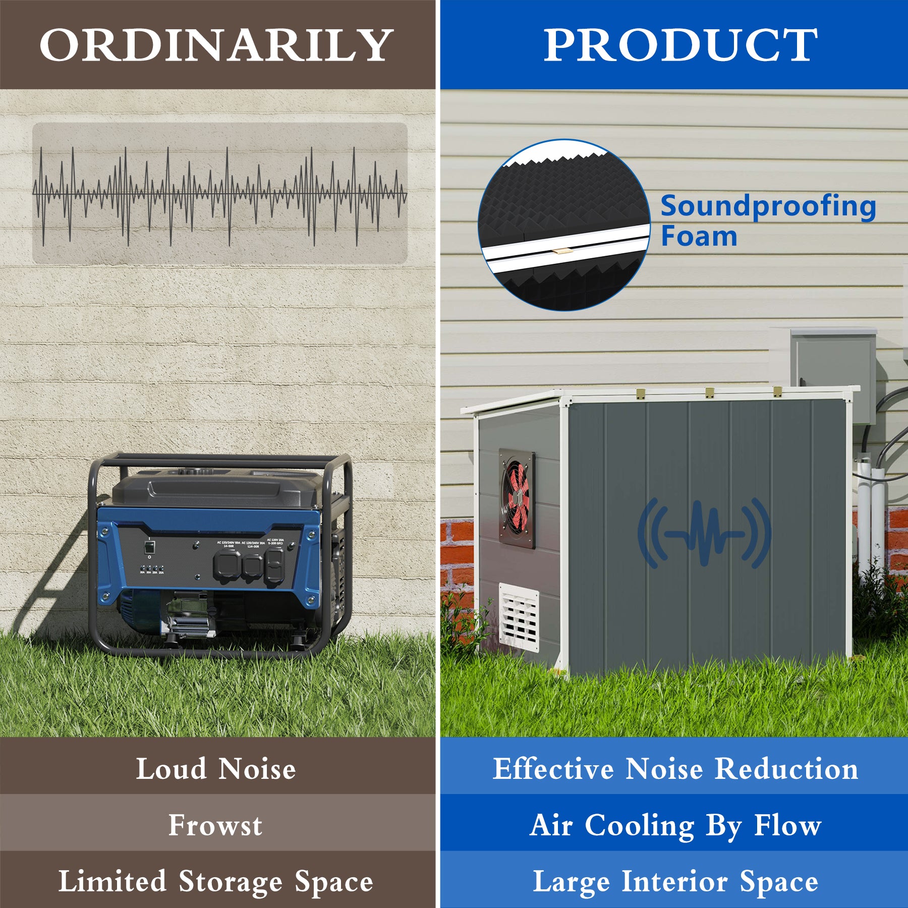 Unlike standard storage sheds that require DIY modifications, this unit is purpose-built for generators—combining ventilation, noise control, and outdoor protection in one simple, ready-to-use housing.