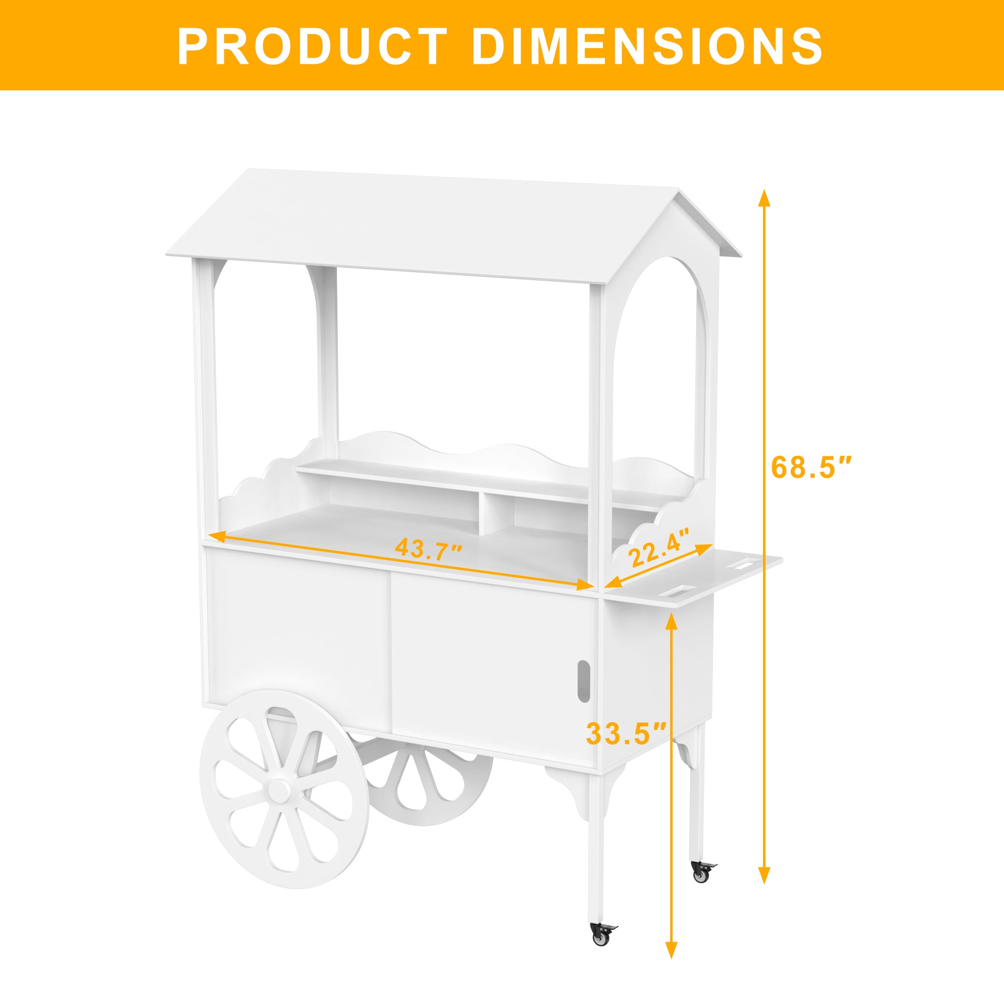 Whether you're hosting a wedding, birthday, baby shower, or themed party, this cart serves as the perfect dessert station, flower display, or charcuterie stand. The tall 68.5" height gives you plenty of room to decorate with signs, balloons, garlands, or even use it as a photo backdrop. It's not just a prop—it’s a true centerpiece.