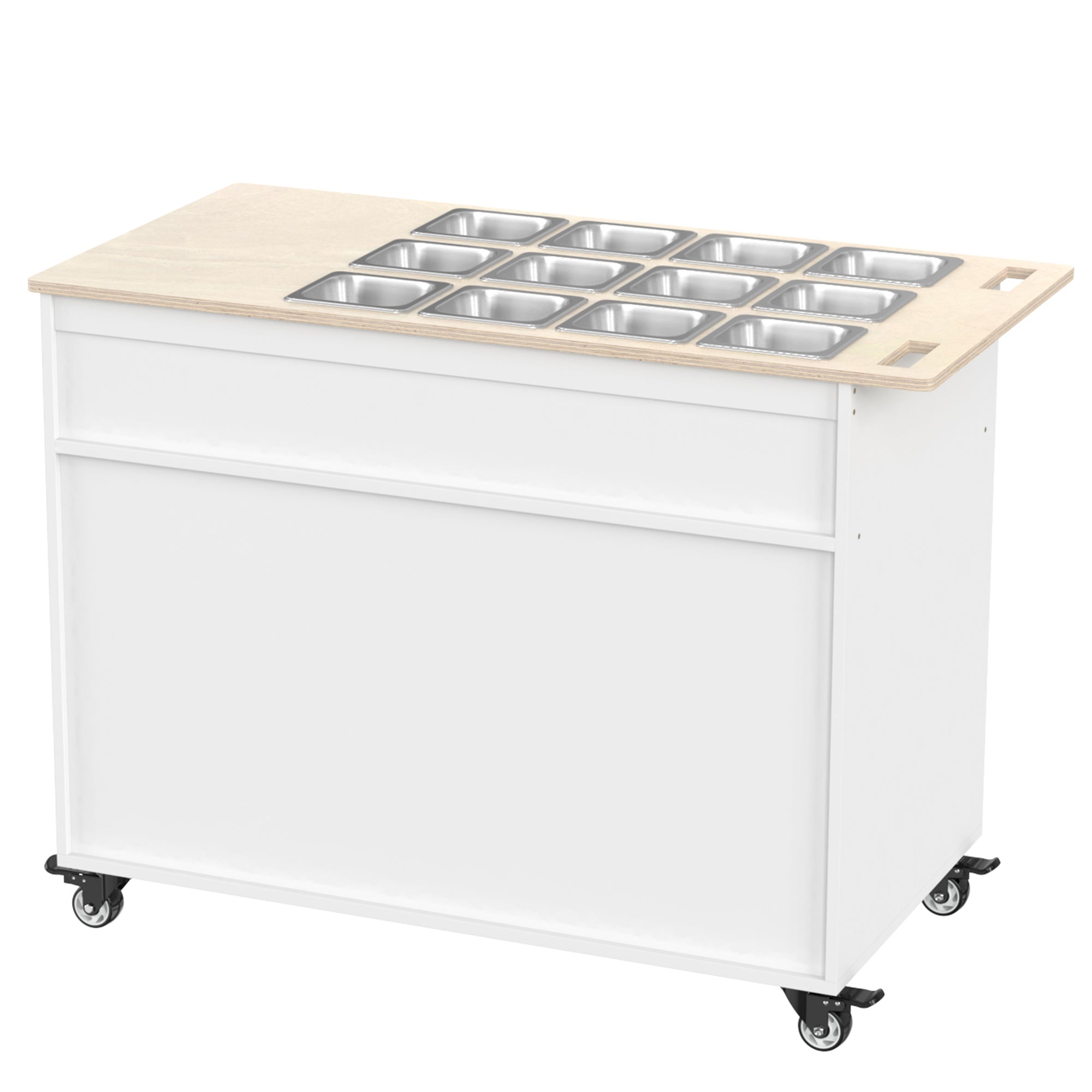 Bring your parties and gatherings to the next level with this Mobile Charcuterie & Buffet Cart. Designed with a spacious countertop featuring built-in stainless steel food pans, it allows you to display cheeses, meats, fruits, snacks, or cold dishes beautifully and conveniently.